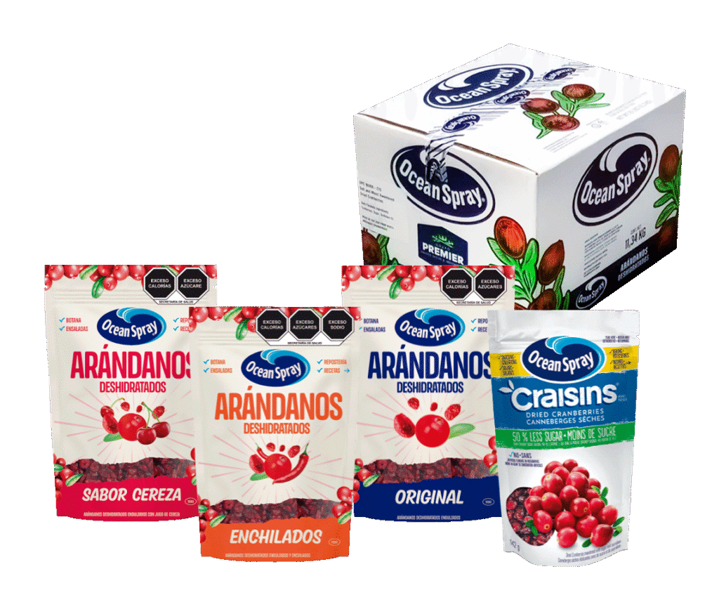 Desde el año 2010 somos el primer contacto de Ocean Spray para la comercialización de arándanos deshidratados y sus variantes en México.